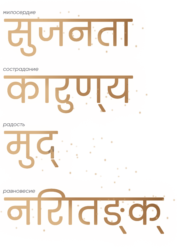 Считается, что делая массаж, практикующий развивает в себе четыре божественных состояния Будды - брахма вихары: метта (милосердие), каруна (сострадание), мудита (радость за другого) и уппекша (уравновешенность).